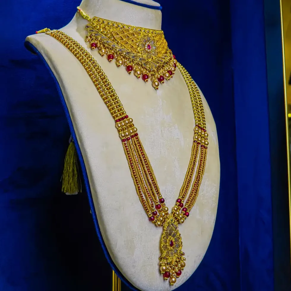 Discover our Bridal Necklace Set — a timeless blend of tradition and luxury, crafted in pure 21K gold for your perfect wedding look.