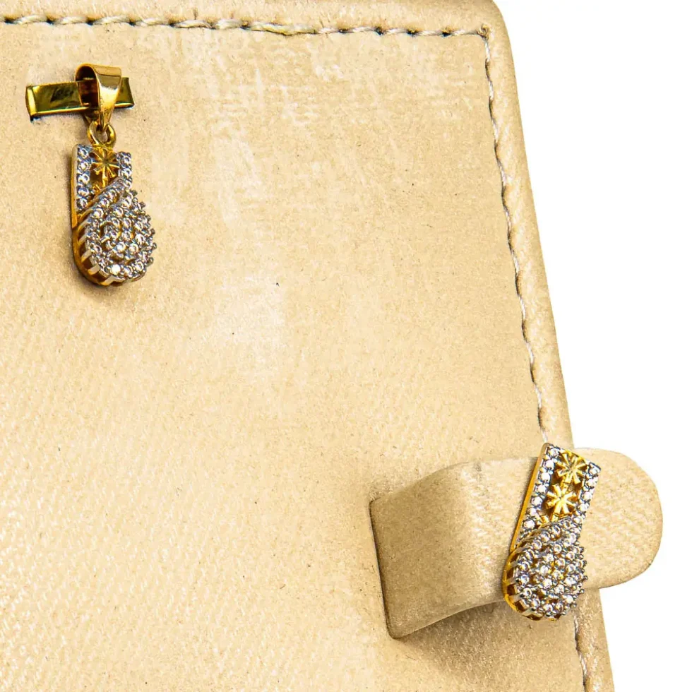Inspired by nature’s elegance, this 21K gold pendant set features a delicate leaf design that radiates simplicity and grace. Its fine detailing and smooth finish make it perfect for both everyday wear and special occasions.