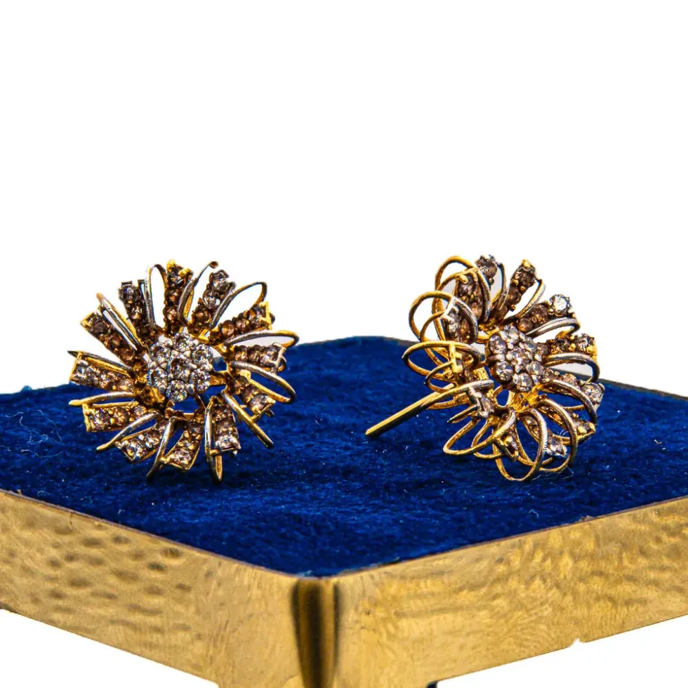 The Ornate Bloom Gold Tops showcase the mastery of craftsmanship in every intricate detail. Made from 21K gold with an antique finish, these earrings feature ornate floral patterns that radiate elegance. Designed to complement traditional attire, they’re a symbol of fine artistry and timeless beauty.